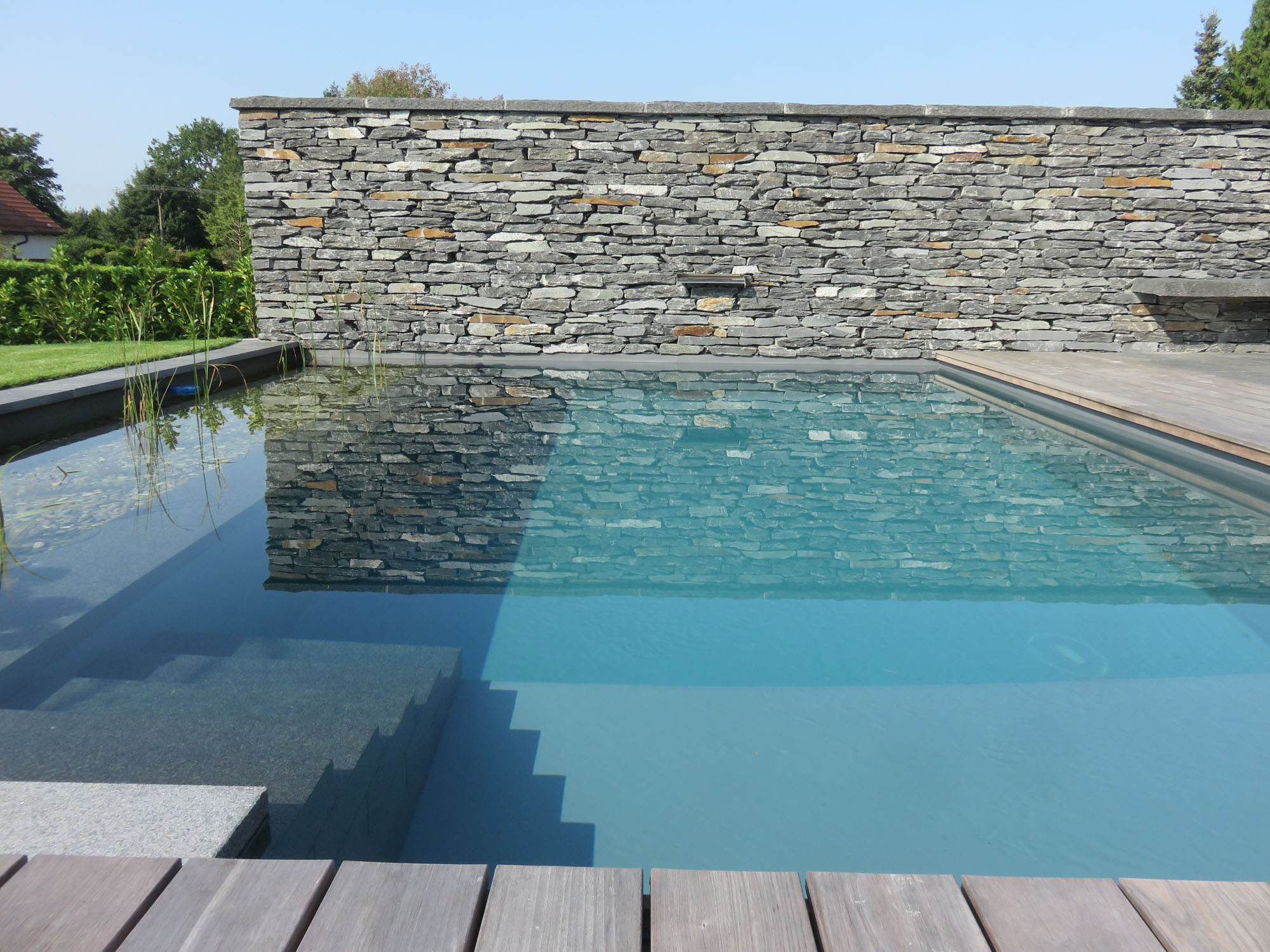 Ganz ohne chemische Zusätze bleibt das Wasser natürlich rein und kristallklar – im Einklang mit den Prinzipien der Natur. Unterstützt wird dieses natürliche Gleichgewicht durch moderne, unauffällig integrierte Technik, die für optimale Wasserqualität, effiziente Reinigung und maximalen Komfort sorgt.