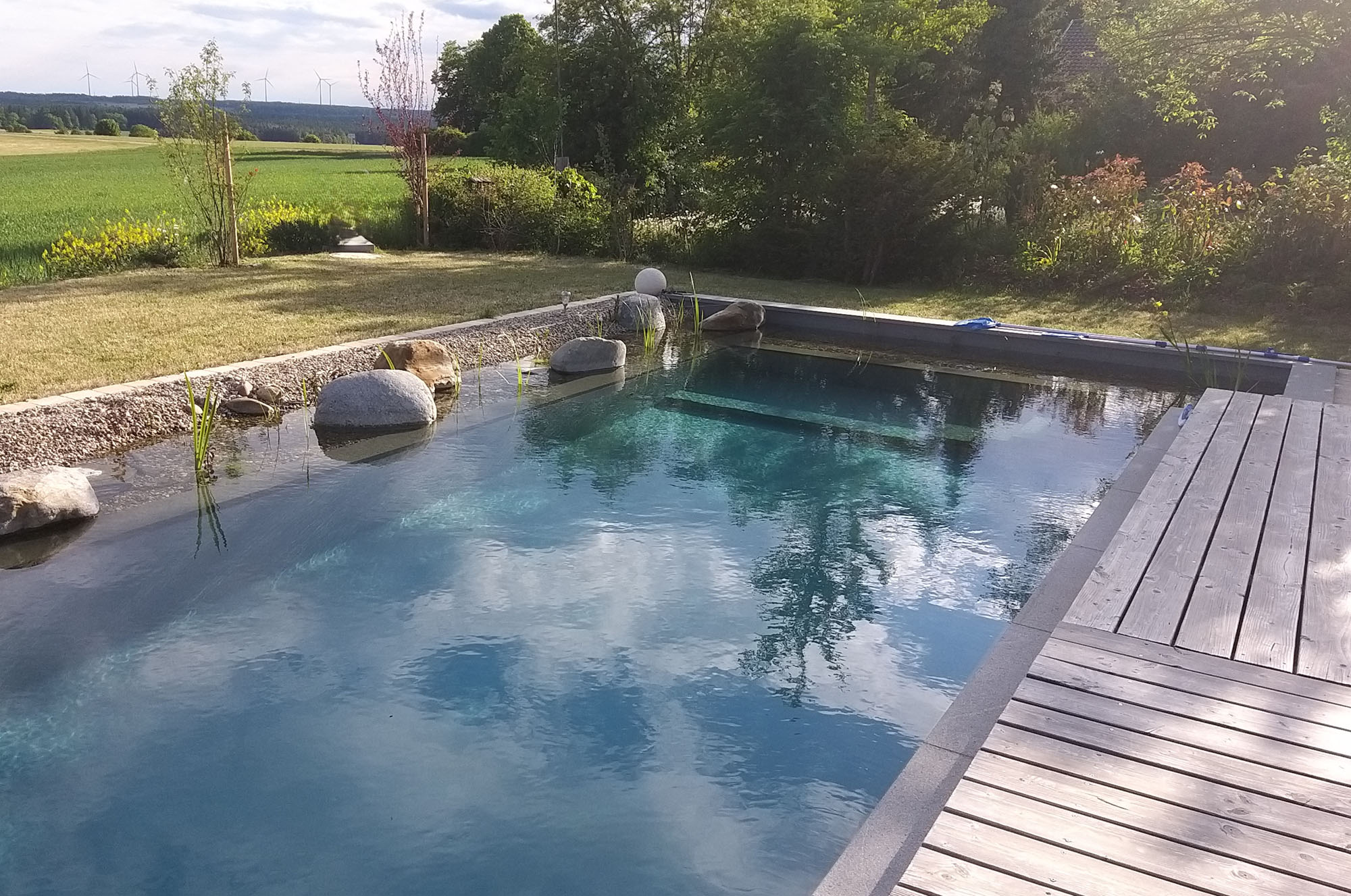 So vereinen unsere Schwimmteiche natürliche Ästhetik mit zeitgemäßer Innovation. Ob entspanntes Dahingleiten, ausgelassener Badespaß mit Familie und Freunden oder die erfrischende Abkühlung an heißen Sommertagen – Ihr Schwimmteich wird zum Lieblingsplatz für Bewegung, Genuss und Lebensfreude.
