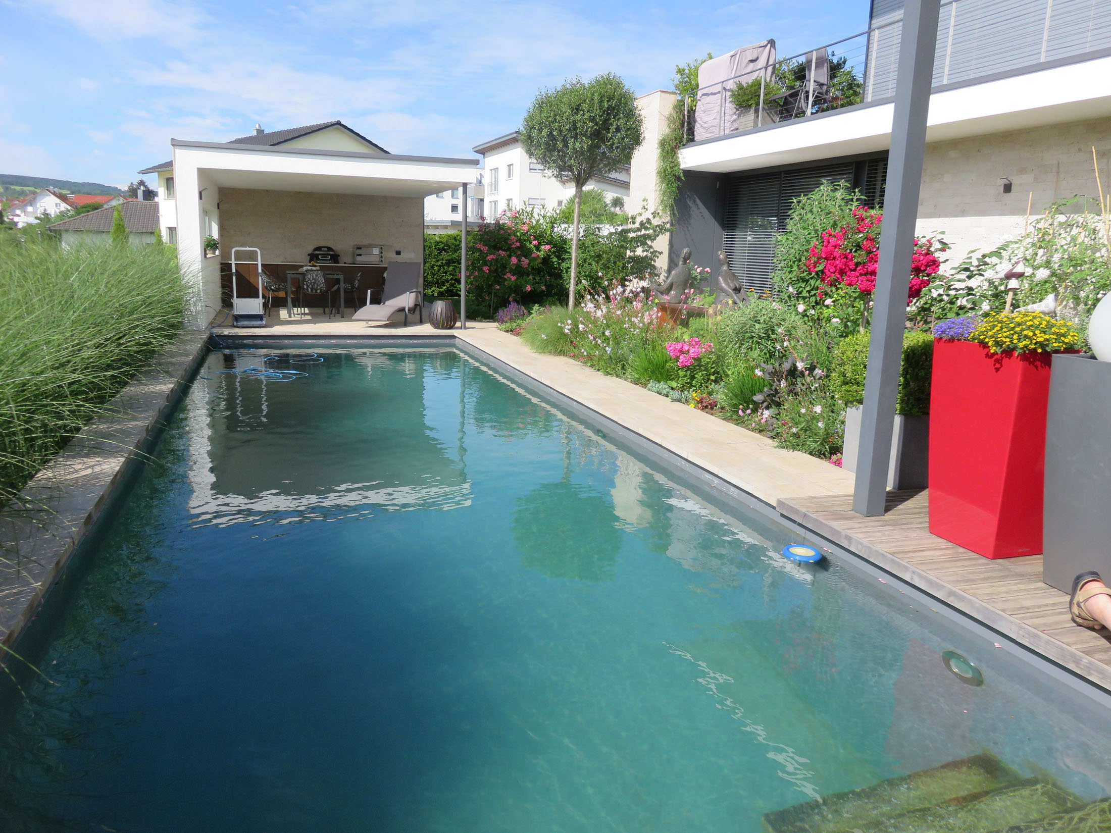 Ganz ohne chemische Zusätze bleibt das Wasser natürlich rein und kristallklar – im Einklang mit den Prinzipien der Natur. Unterstützt wird dieses natürliche Gleichgewicht durch moderne, unauffällig integrierte Technik, die für optimale Wasserqualität, effiziente Reinigung und maximalen Komfort sorgt.